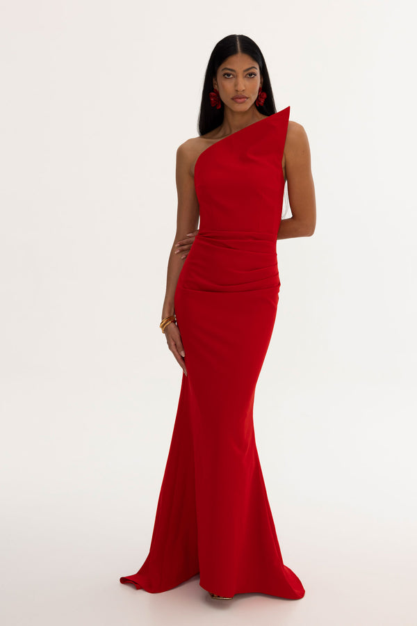 Step into the spotlight with the Red Triangle dress — a bold statement in precision and poise. Sculpted to perfection, this gown features a dramatic triangular neckline and an elegantly contoured silhouette that commands attention with quiet confidence. Crafted in a vivid red that flatters every skin tone, it’s a piece made for grand entrances and unforgettable moments.